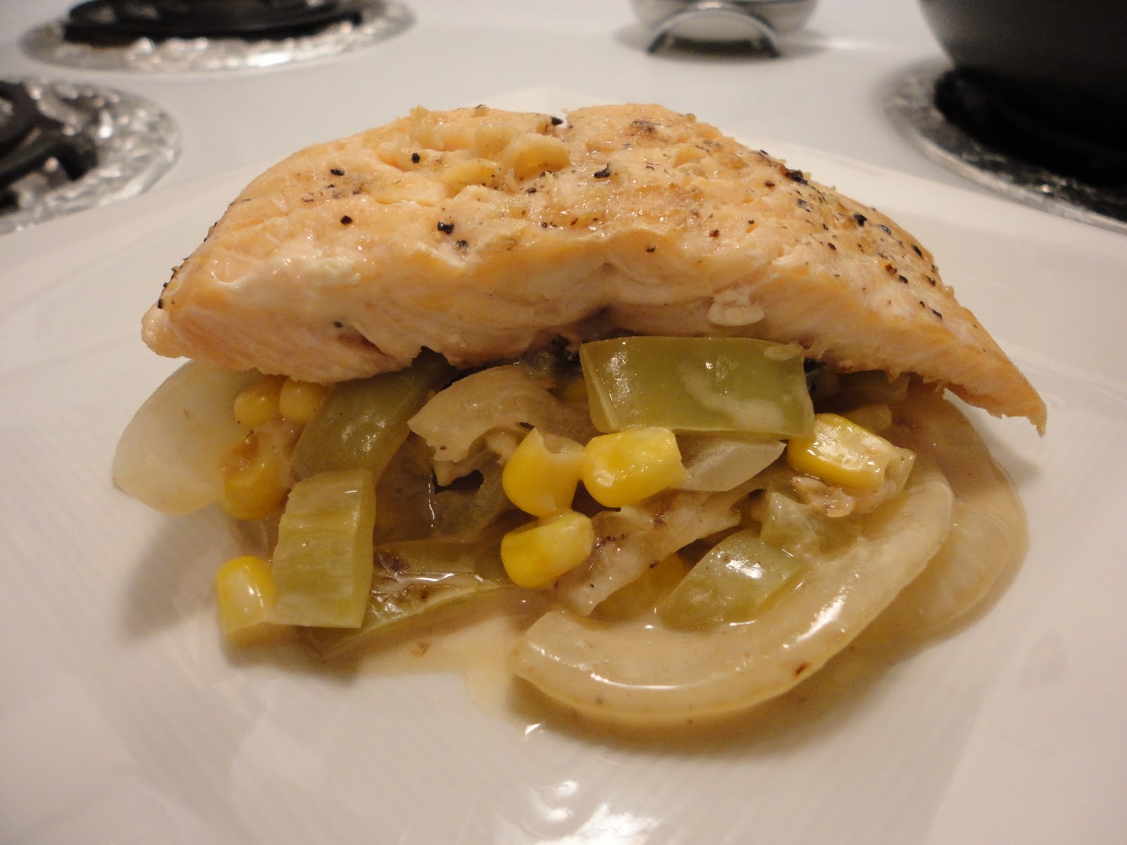 A Pirate's Journey in the Kitchen: Pan-Grilled Salmon with Poblanos, Corn & Onions