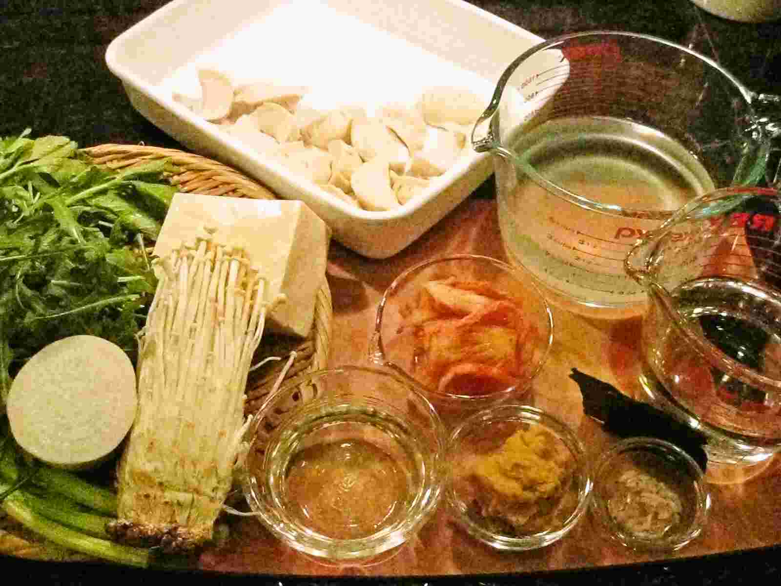 Recipes for Tom: Gyoza no pirikara-nabe / mildly spicy hot pot with jiaozi dumplings and kimchee