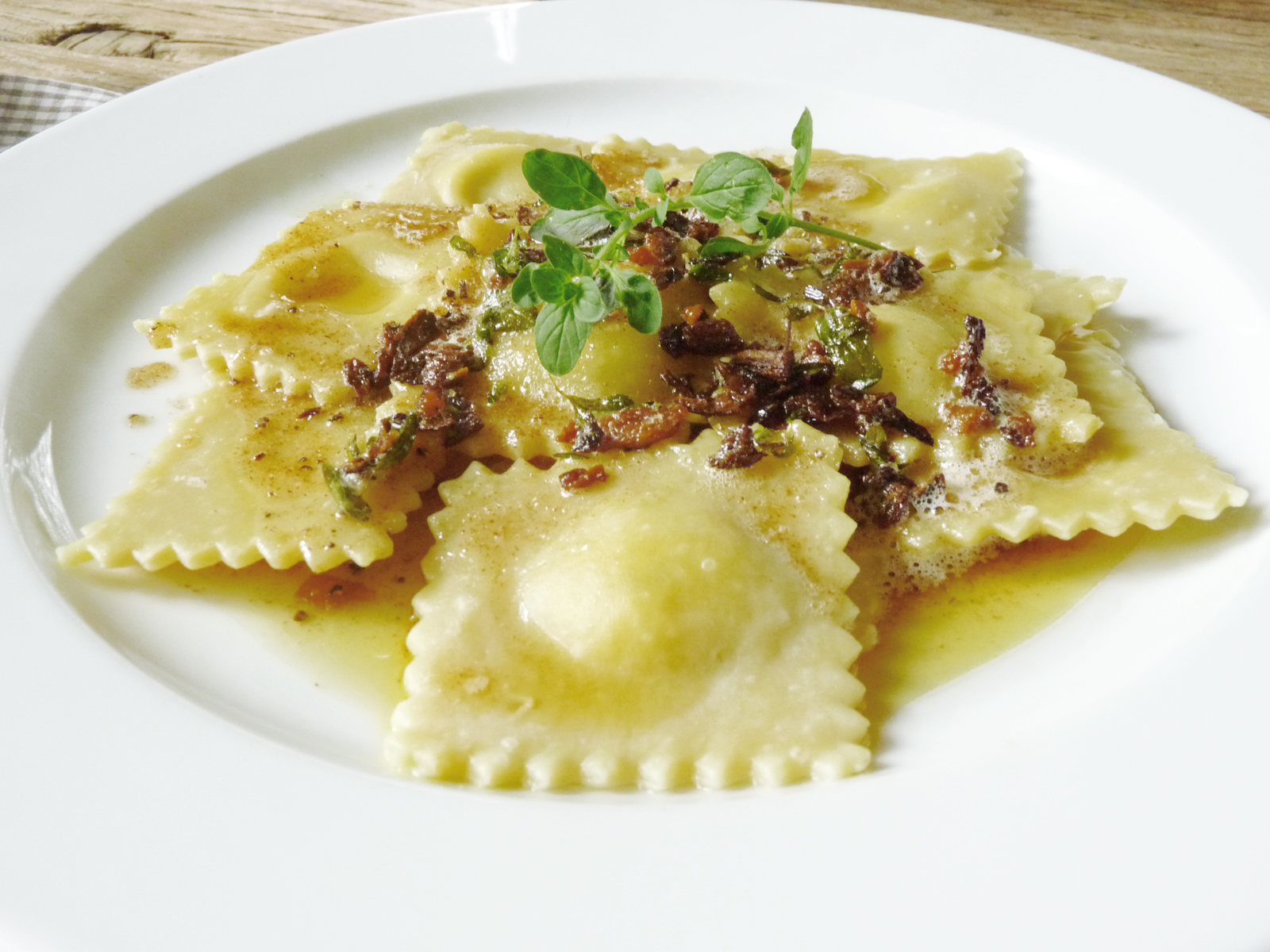fork and flower: truffle ravioli with beurre noisette